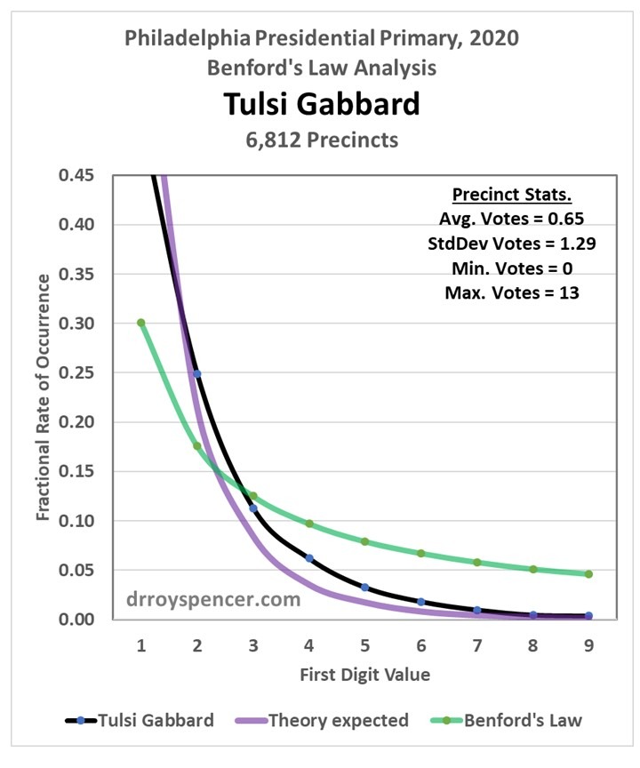 And this is contrary to the basis for Bendford’s Law-type analysis of voting data: It assumes that vote totals follow a specific frequency distribution (lognormal or 1/x), and if votes are fraudulently added (AND those fake additions are approximately normally distributed!), then the 1st-digit analysis will depart from Benford’s Law.