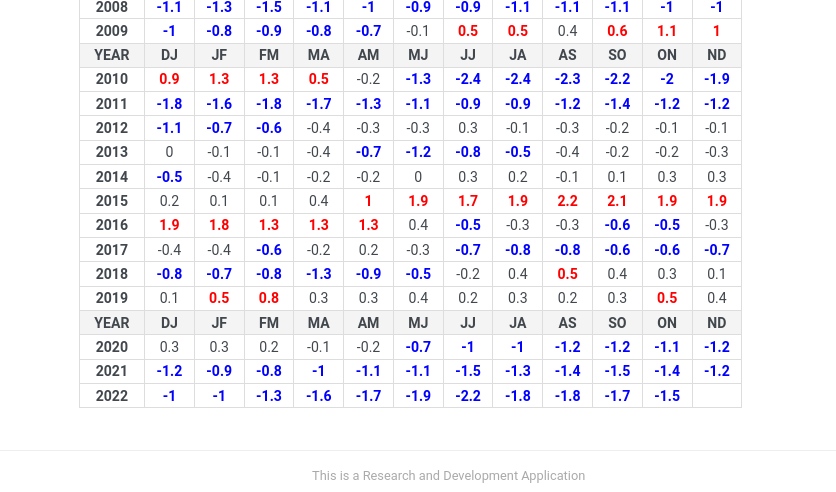 | 2021 | Jan | +0.13 | +0.34 | -0.09 | -0.08 | +0.36 | +0.50 | -0.52 |